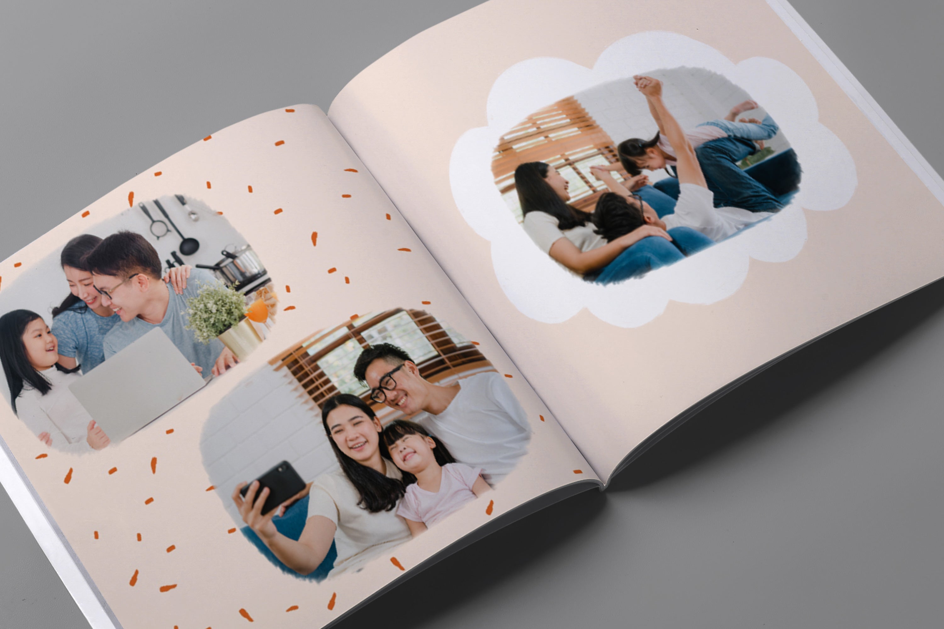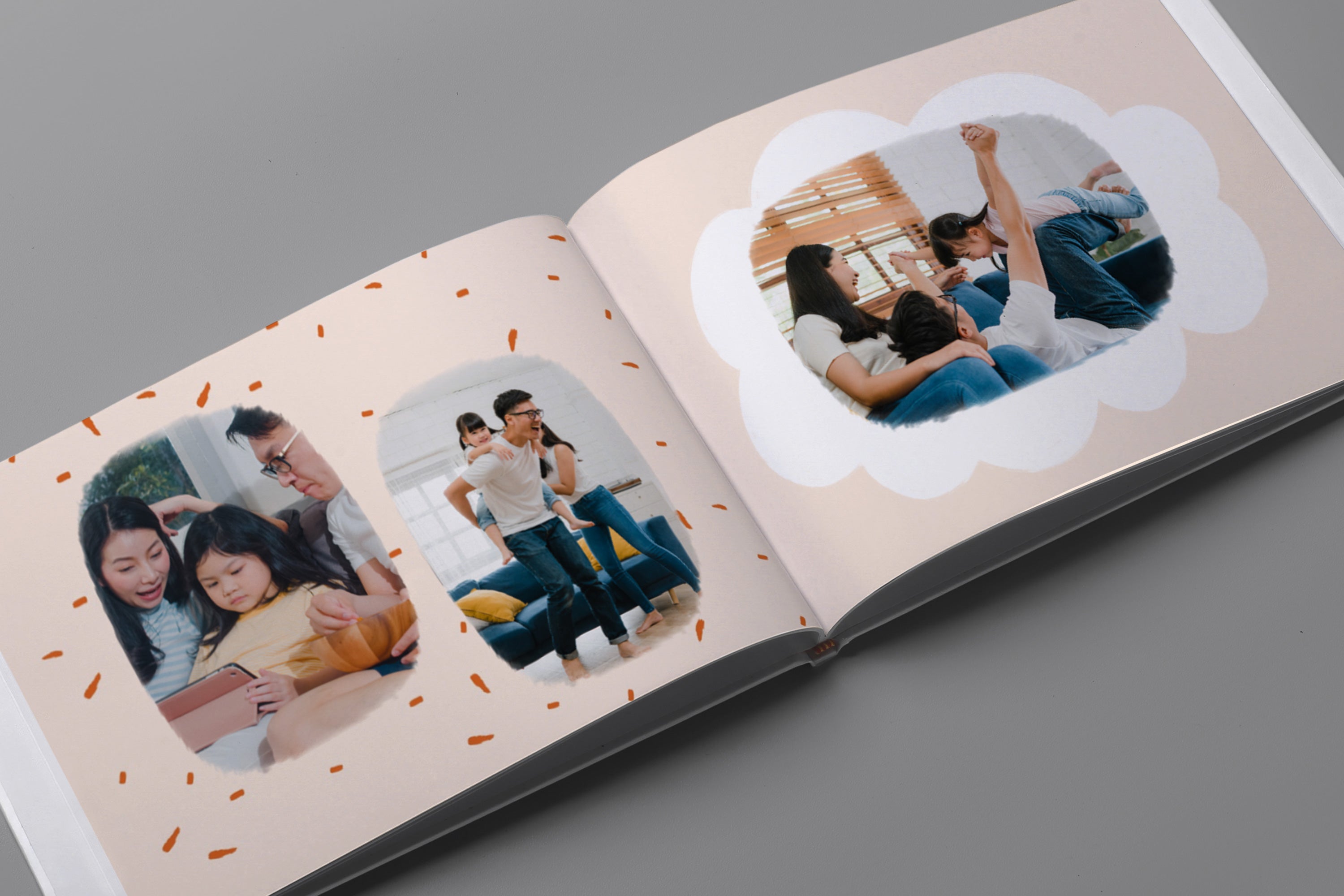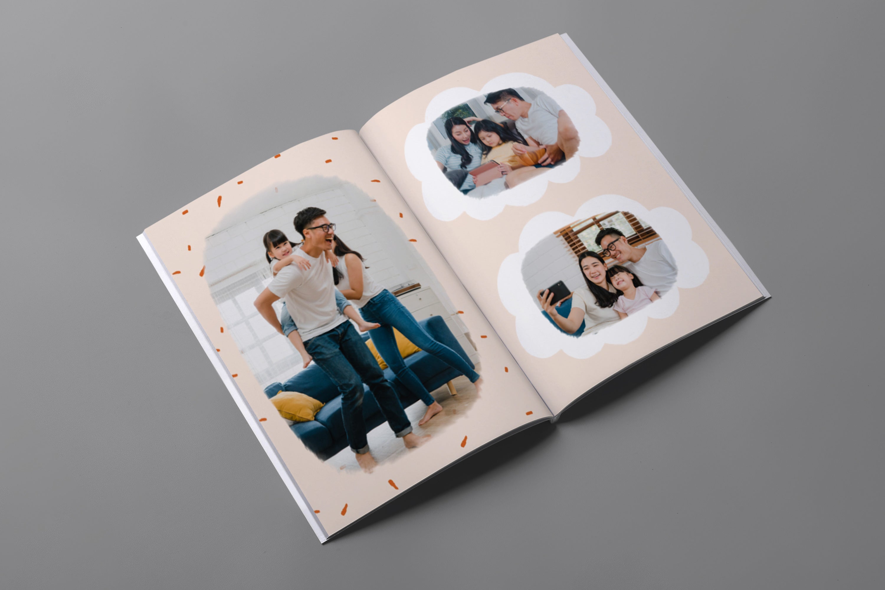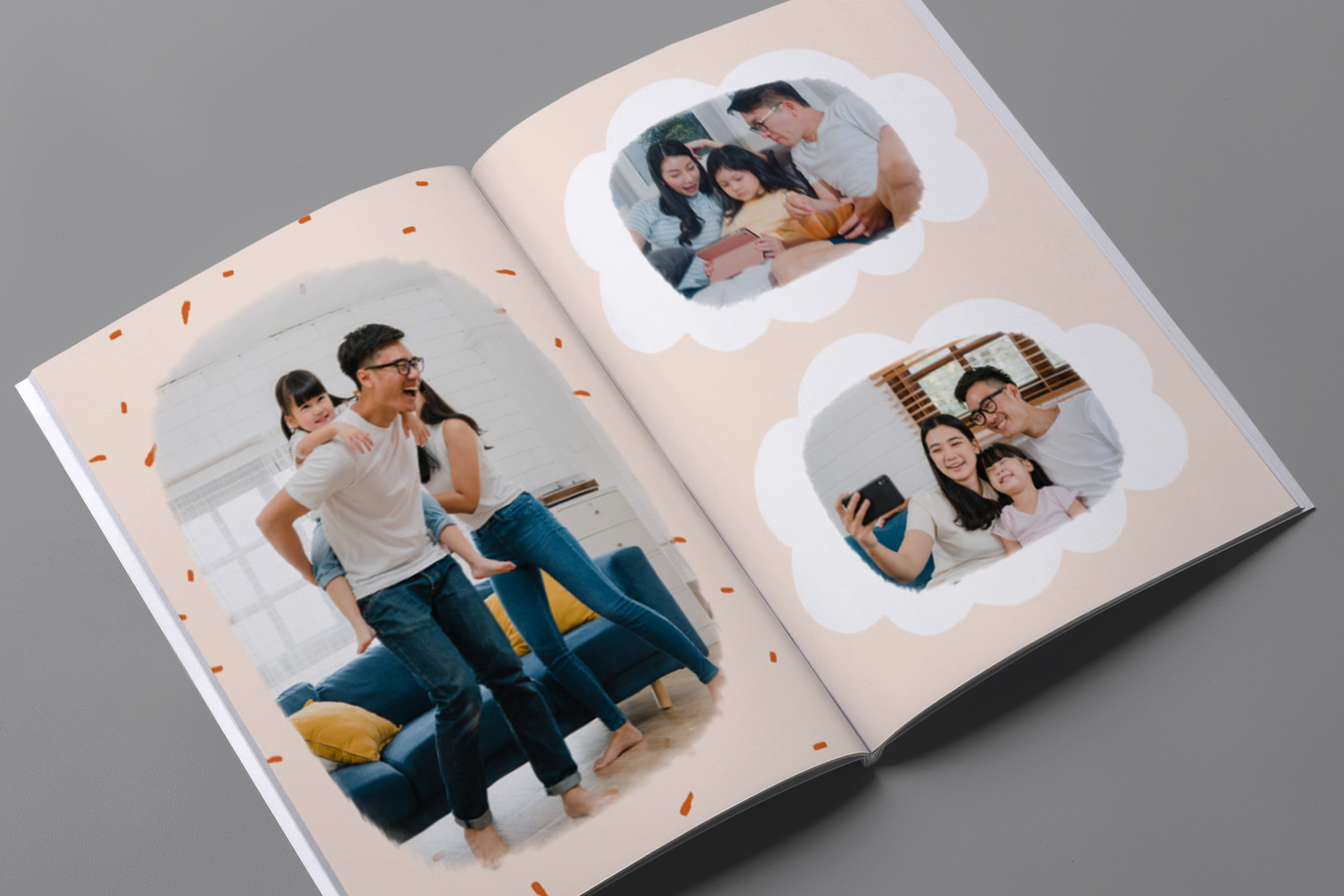 - Album foto softcover kami menggunakan cover tipe kertas 250gsm dengan permukaan lembut dan glossy. Kemudian setiap halaman menggunakan tipe kertas 200gsm, yang memberikan kesan elegan dengan desain yang ringan dan fleksibel.