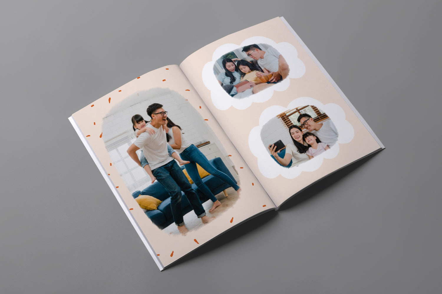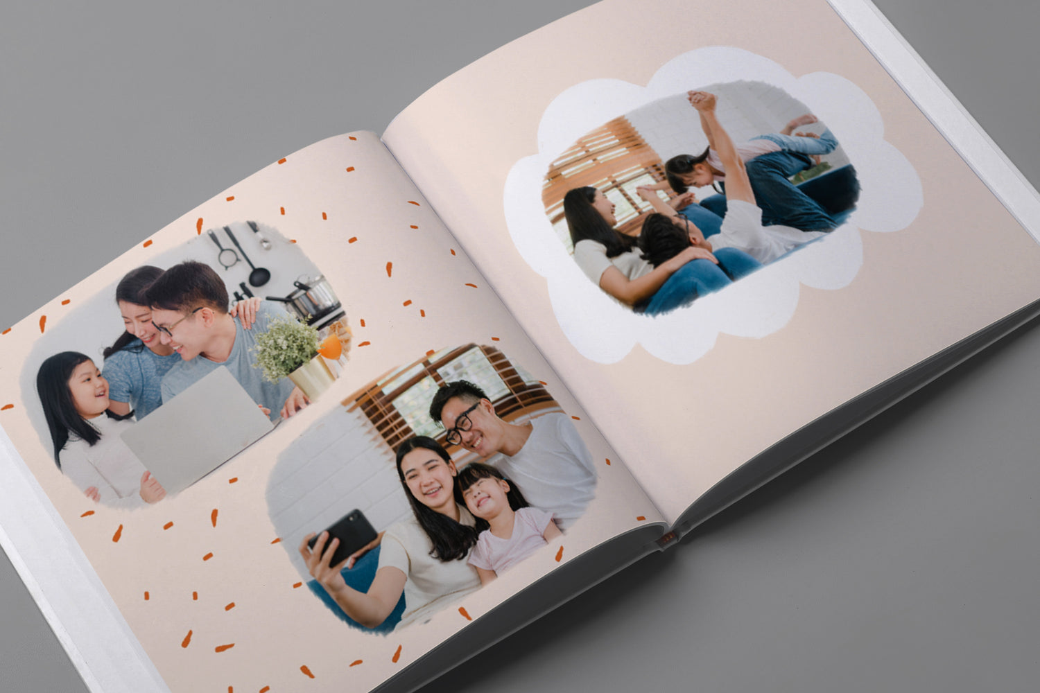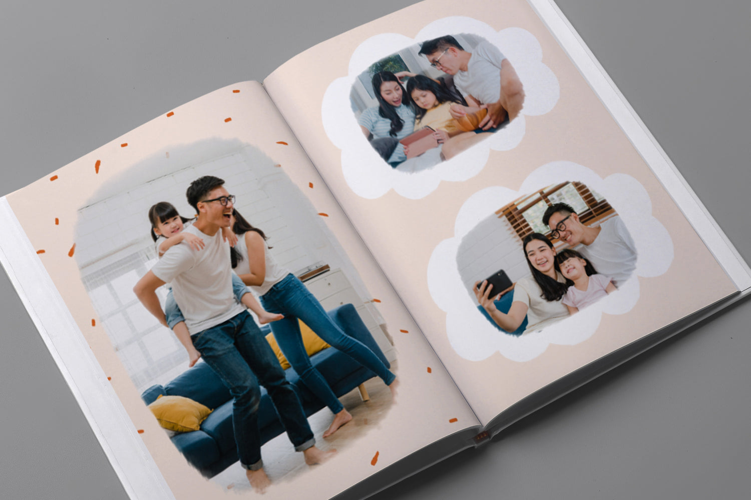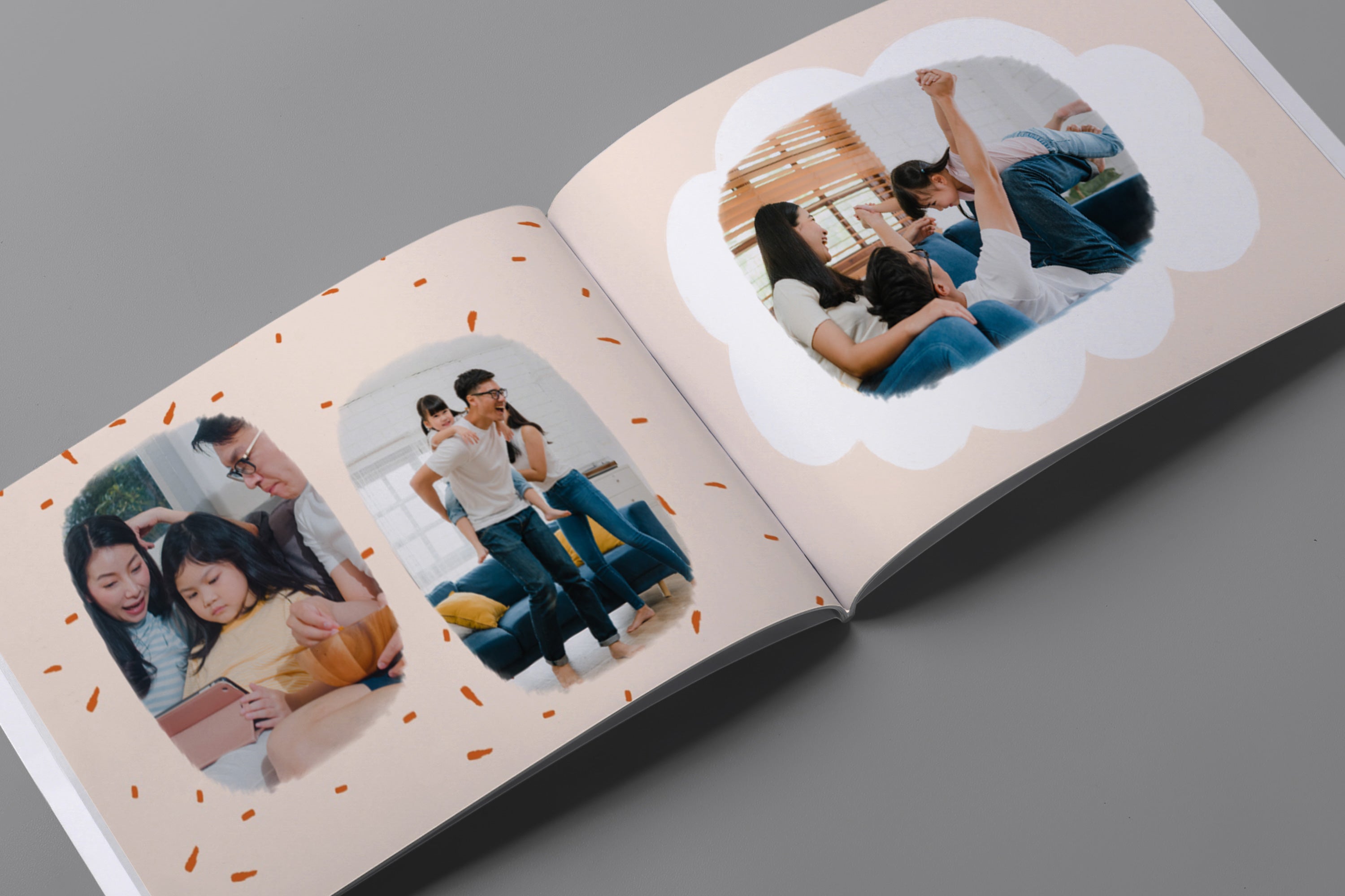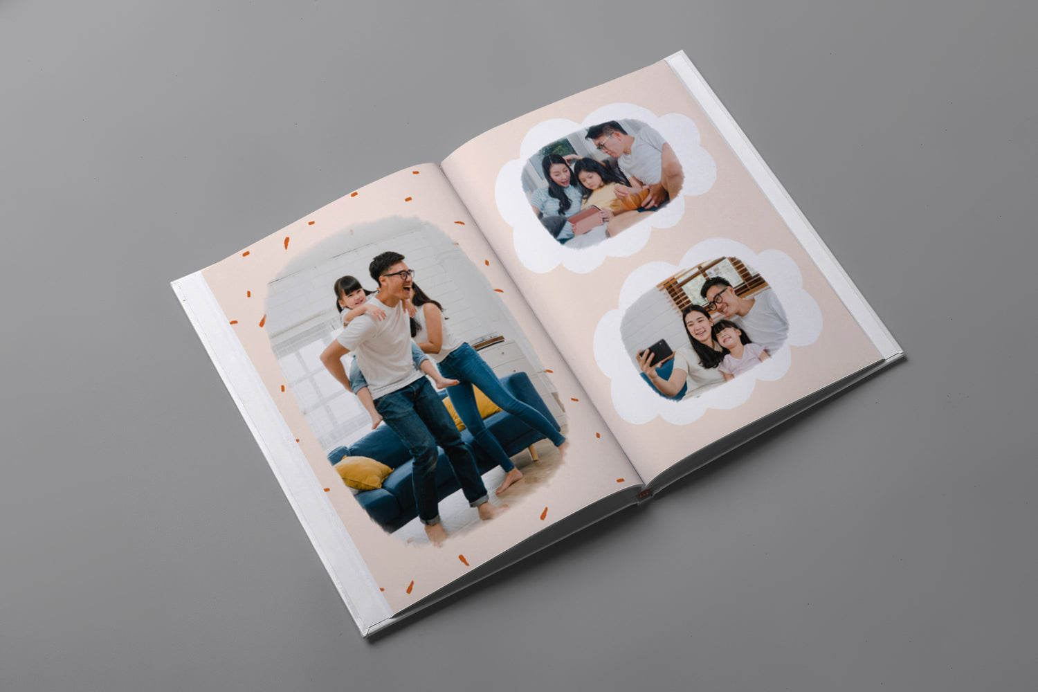 - Album foto softcover kami menggunakan cover tipe kertas 250gsm dengan permukaan lembut dan glossy. Kemudian setiap halaman menggunakan tipe kertas 200gsm, yang memberikan kesan elegan dengan desain yang ringan dan fleksibel.